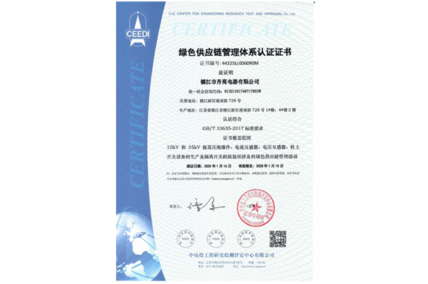 綠色供應鏈管理體系認證證書