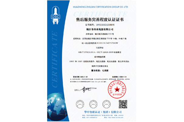 售后服務完善程度認證證書