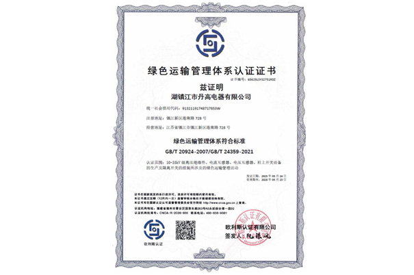 綠色運輸管理體系認證證書